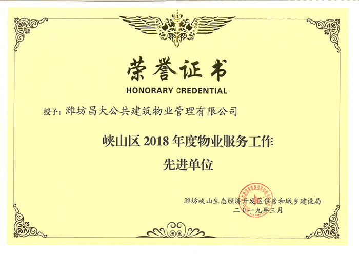 2018年度峽山區(qū)物業(yè)服務(wù)工作先進(jìn)單位